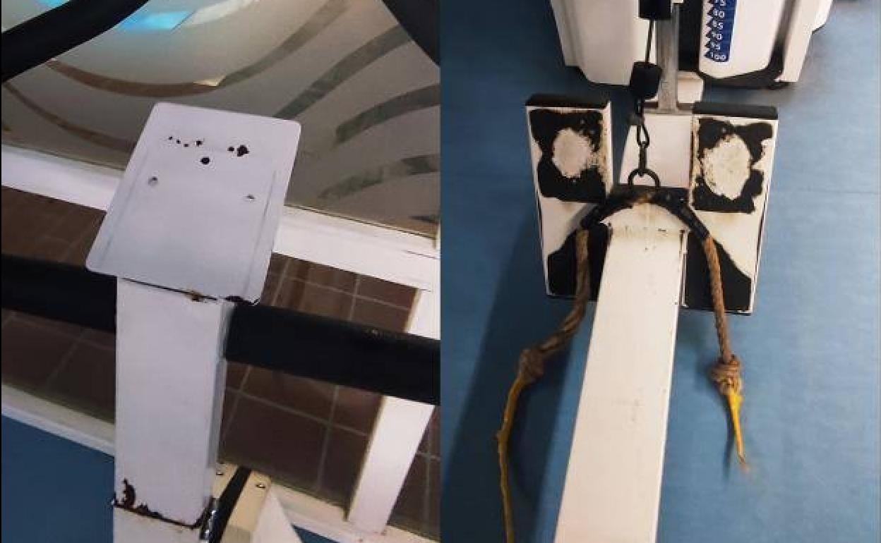 Entre las deficiencias detectadas, señalan máquinas oxidadas, tapicería resquebrajada, agarraderas rotas, cinta aislante utilizada para reforzar máquinas, elementos sin la necesaria protección, cables dañados, barras sin presas adecuadas para mantener los discos en ellas, pedales sin rastrales o bicicletas estáticas sin los elementos electrónicos necesarios.