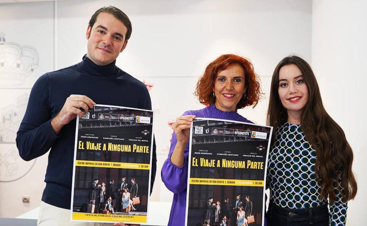El teatro Imperial de Don Benito acoge el próximo sábado, 17 de diciembre, el espectáculo 'El viaje a ninguna parte'. Una obra teatral que llega a la localidad a cargo de la compañía madrileña Bestiario, bajo la dirección de Jesús Rodríguez. La cita tendrá lugar a partir de las 20.30 horas. La concejal de Cultura, Natalia Blanco, presentó el evento acompañada por los actores Pablo Ríos y Paula Susavila.