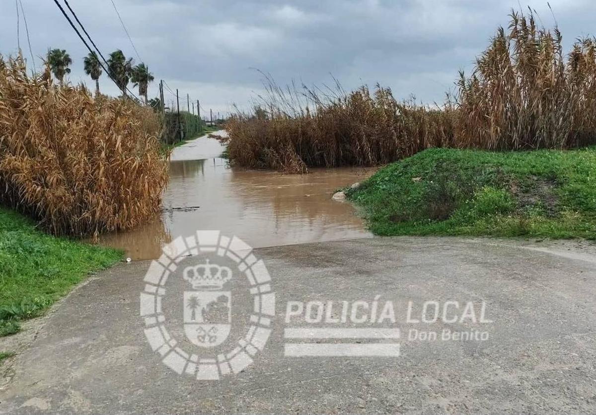 La Policía Local ha cortado al tráfico el camino del Arroyo del Campo que se encuentra inundado debido a las intensas precipitaciones registradas en las últimas horas.