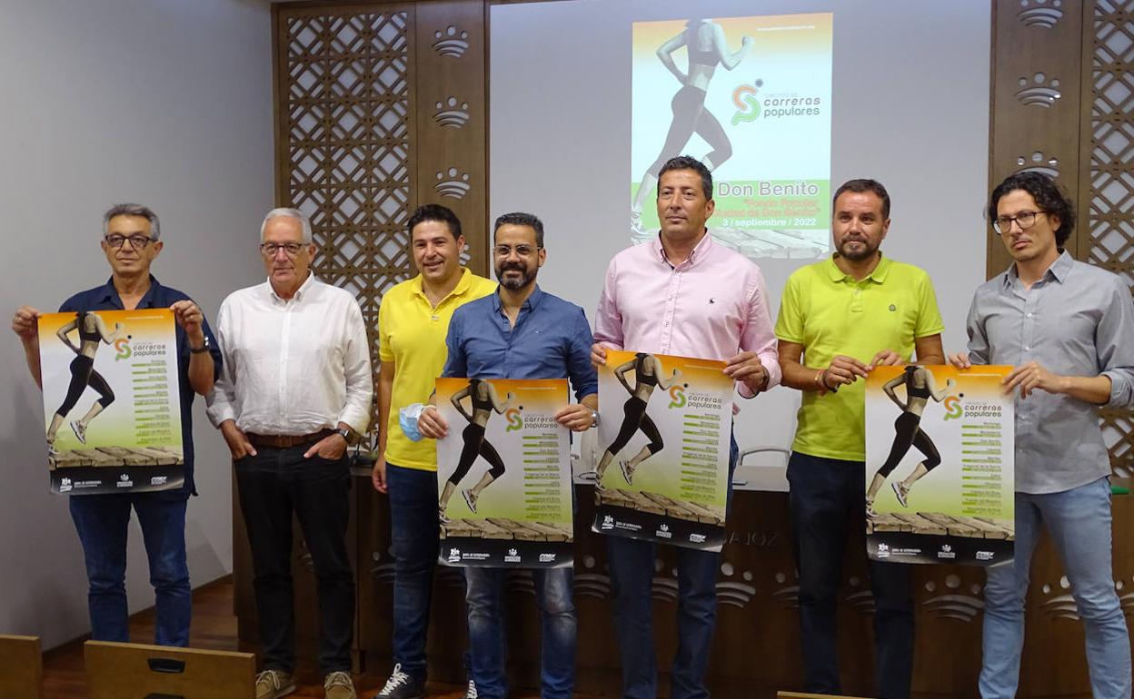 A la presentación han asistido el diputado de Cultura y Deportes, Francisco Martos, el alcalde de Berlanga, Juan Manuel Ortiz, el presidente de la Federación Extremeña de Atletismo, Antonio Campos, y Puri Domínguez, representante de la empresa organizadora.