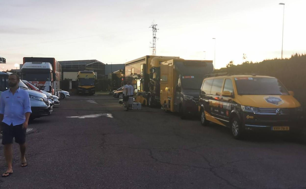 Aunque ya sin el mediático Primoz Roglic, los camiones, coches, autobuses y furgonetas del equipo de los Países Bajos eligieron esta vez el hotel dombenitense en lugar del Cortijo Santa Cruz, de Villanueva, donde se quedaron el año pasado. También en este hotel descansarán algunos equipos esta noche. A ambos lugares se asomaron ayer algunos curiosos.