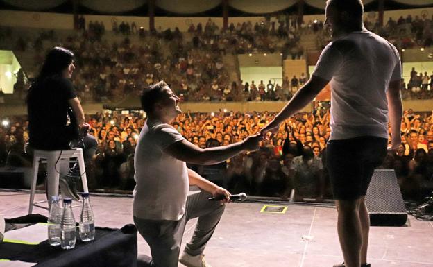 Ainhoa Flores terminó la actuación emocionada como unos minutos antes lo había hecho Daniel Reyes para disfrutar de la que sería, quizás, la sorpresa de su vida. El joven, fiel seguidor de Camela desde hace años, subió al escenario sin saber que su pareja, Ángel Sánchez, iba a aprovechar ese momento para pedirle matrimonio. Ante la atenta mirada de la voz femenina del grupo y con cientos de móviles grabando el momento, respondió sí a la propuesta.
