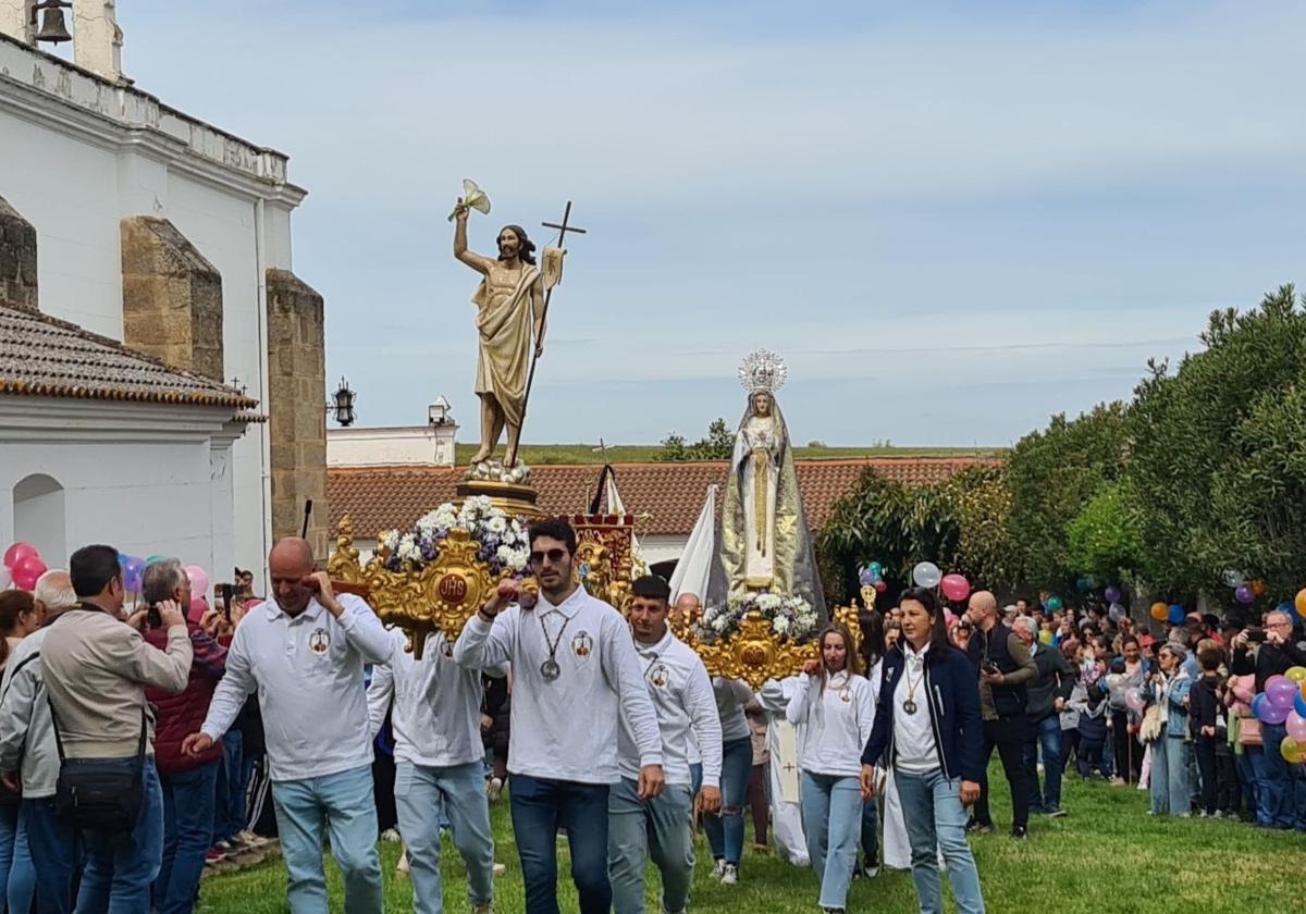 La ermita fue, como cada Lunes de Pascua, el escenario de esta procesión en la que la Virgen y el Resucitado se encuentran