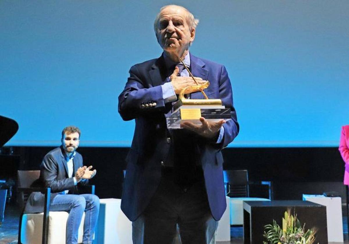 «He pasado uno de los días más bonitos de mi vida», expresaba casi para concluir José María García tras recibir en Don Benito este viernes el Premio Santiago Castelo como reconocimiento a su trayectoria periodística. Fue una jornada intensa que comenzó con una distendida comida junto a periodistas y representantes culturales; después tuvo ocasión de pasear por la zona centro de la localidad dombenitense y terminó con una velada periodística de la que fue protagonista en un abarrotado auditorio en Feval.