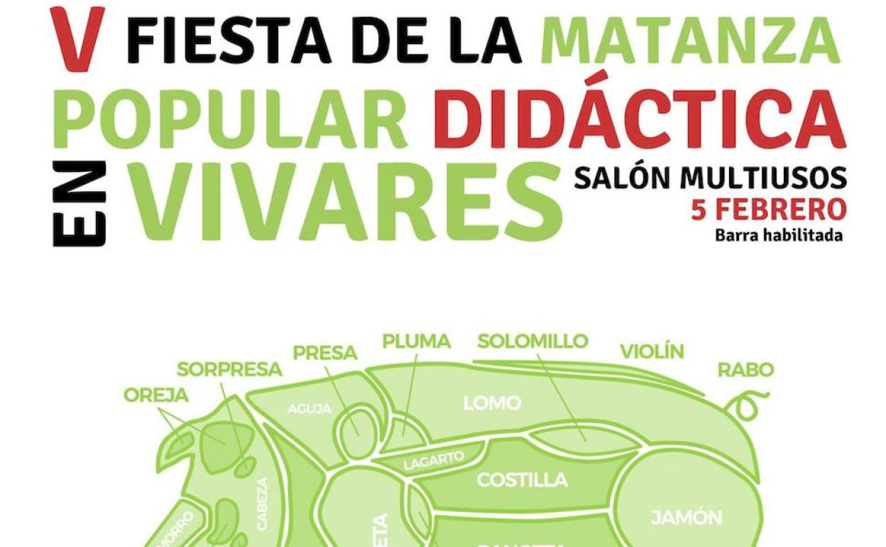 La localidad de Vivares celebrará este próximo sábado, 5 de febrero, la quinta edición de su Matanza Popular Didáctica. La cita tendrá lugar en el salón multiusos del municipio vivareño y contará con varias actividades al margen de la parte didáctica del propio sacrificio del cerdo que comenzará a las 8.30 de la mañana.