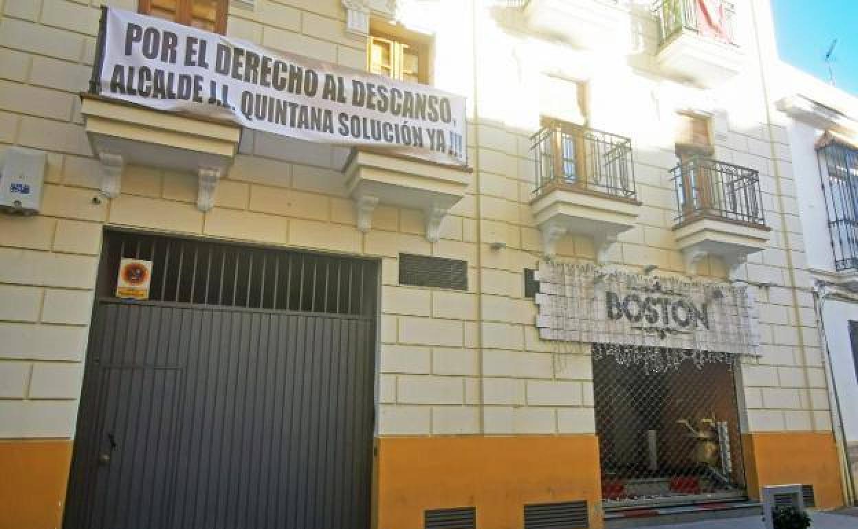 «Por un centro libre de ruidos nocturnos, música alta y molestias para los vecinos. Alcalde José Luis Quintana, solución ya». Es el texto que puede leerse en la pancarta instalada desde hace unos días en la calle Doña Consuelo Torres de Don Benito. A la vuelta de la esquina, en la calle Alonso de Mendoza, hay otra que reza «Por el derecho al descanso». Es el grito de ayuda de los vecinos tras casi una década de guerra contra el ruido. «Es una situación incómoda porque tenemos personas mayores y niños en el edificio para las que los ruidos son tremendos», explica el presidente de la comunidad de propietarios.