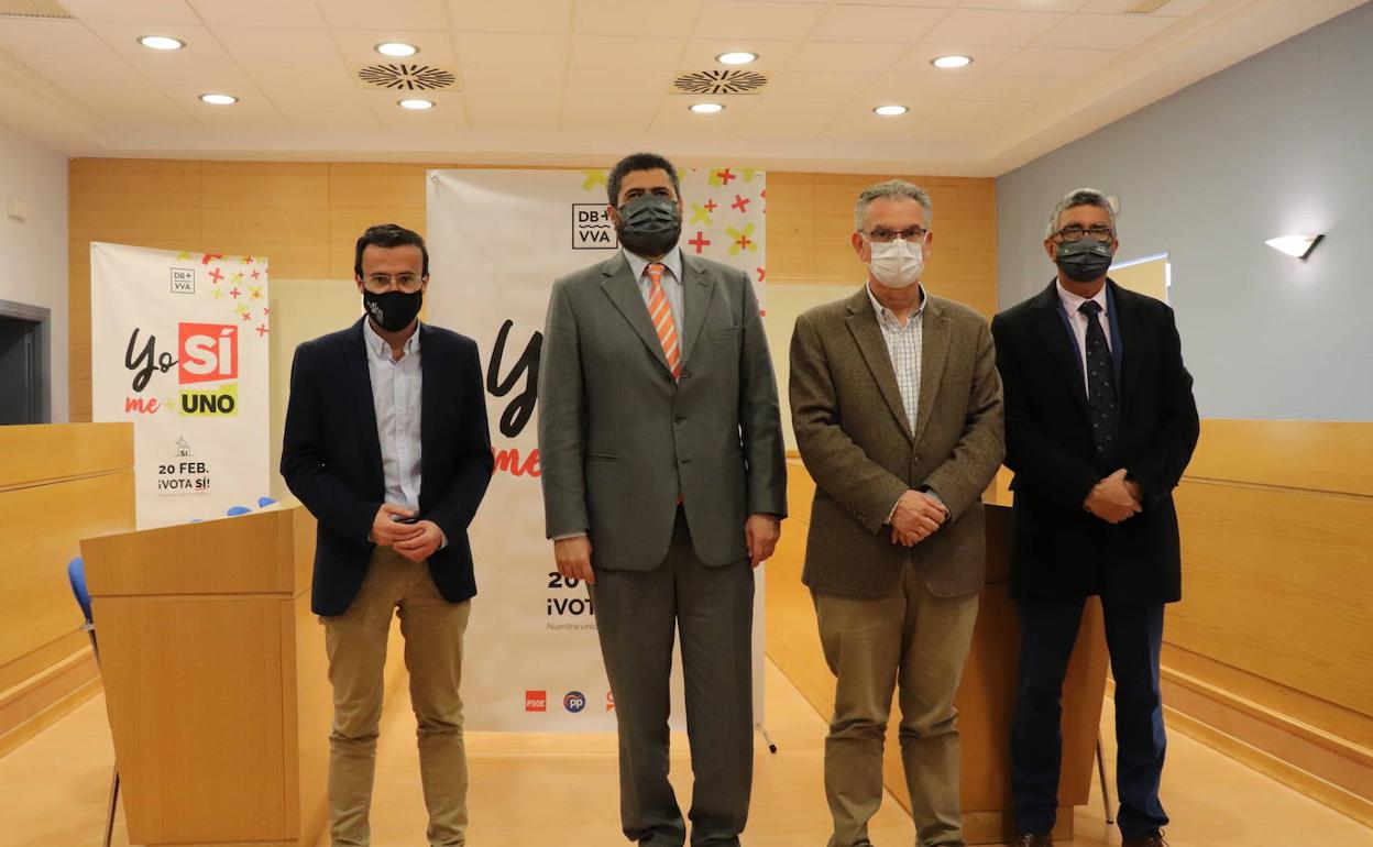 La ONCE dedicará un cupón a la unión de Don Benito y Villanueva de la Serena como apoyo al proceso que en estos días se viven en ambas ciudades. El anuncio lo hizo ayer el delegado territorial de la ONCE en Extremadura, Fernando Iglesias junto con el alcalde de Villanueva de la Serena, Miguel Ángel Gallardo y el alcalde de Don Benito, José Luis Quintana, en rueda de prensa. En la misma, estuvo presente además el director de la ONCE en Don Benito, Felipe Redondo.