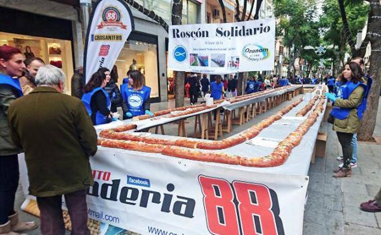 Se trata de un roscón de 100 metros elaborado por la Croissantería 88 con la colaboración del Ayuntamiento de Don Benito y la plataforma de voluntariado de la Sociedad San Vicente de Paul, situada en el centro Ozanam de Don Benito.