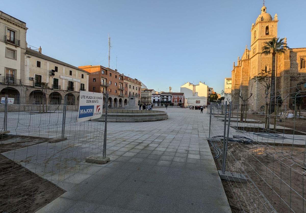 Con las obras sin finalizar y, por tanto, sin recepcionar, la plaza de España se abrió este viernes al tránsito peatonal con el objetivo, dicen desde el Ayuntamiento de Don Benito, de que la ciudadanía disfrute de este espacio durante la Navidad. Además, pese a no llegar a tiempo para instalar decoración navideña en esta zona, es intención del Consistorio finalizar aquí la Cabalgata de Reyes el próximo 5 de enero.