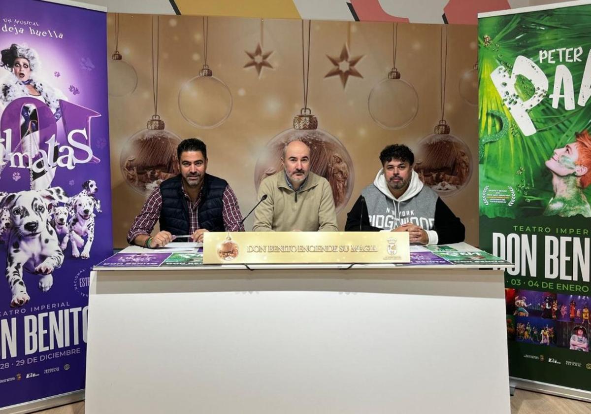La Navidad llega un año más a Don Benito en forma de musicales. Una versión particular de '101 Dálmatas' y la historia de 'Peter Pan' recalarán en los próximos días en el Teatro Imperial. La cita ha sido presentada esta semana por el concejal de Cultura, Francisco Sánchez, y los promotores, Germán Robles y Fernando Gonzalo. El importe de adjudicación de estos eventos es de 25.410 euros, impuestos incluidos.