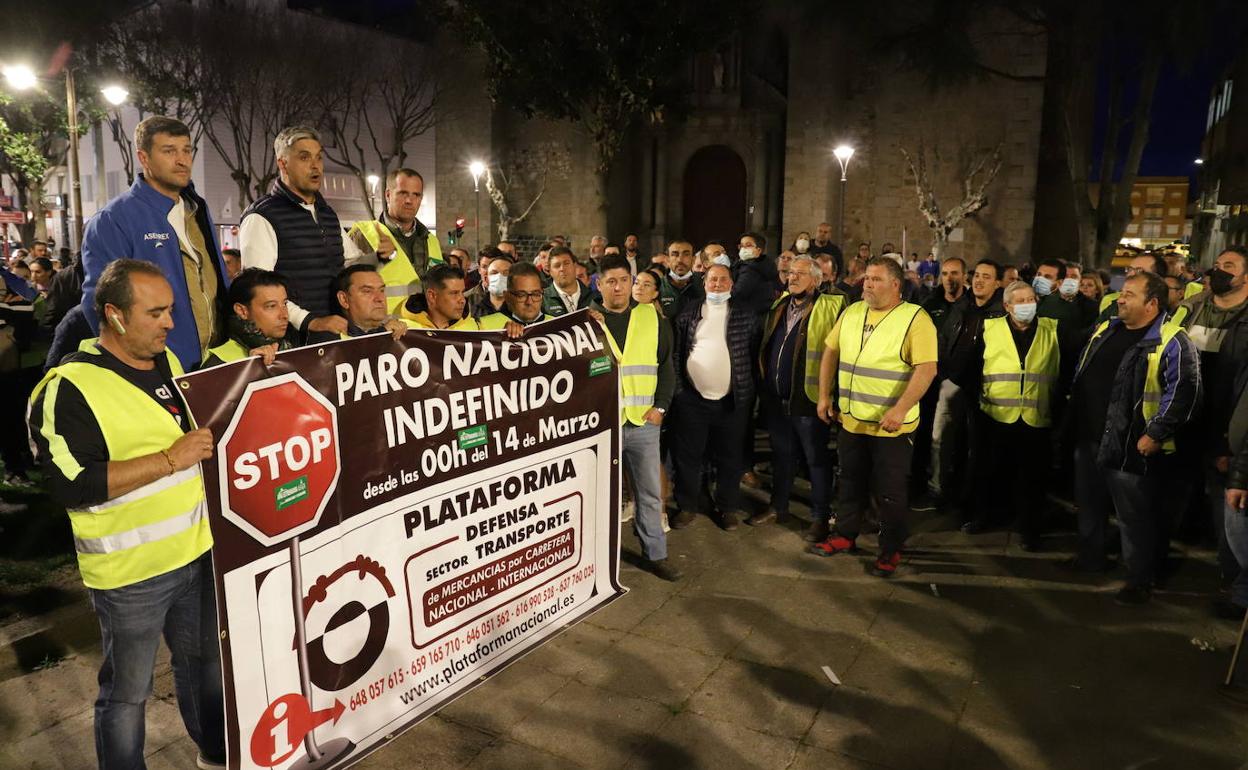 Las manifestaciones de los transportistas se trasladaron anoche a Don Benito, en concreto, a su plaza de España. Hasta allí se desplazaron decenas de ellos, acompañados por familiares y vecinos, pero también por agricultores y ganaderos con representantes, entre otros, de Apag Extremadura Asaja y Aseprex.