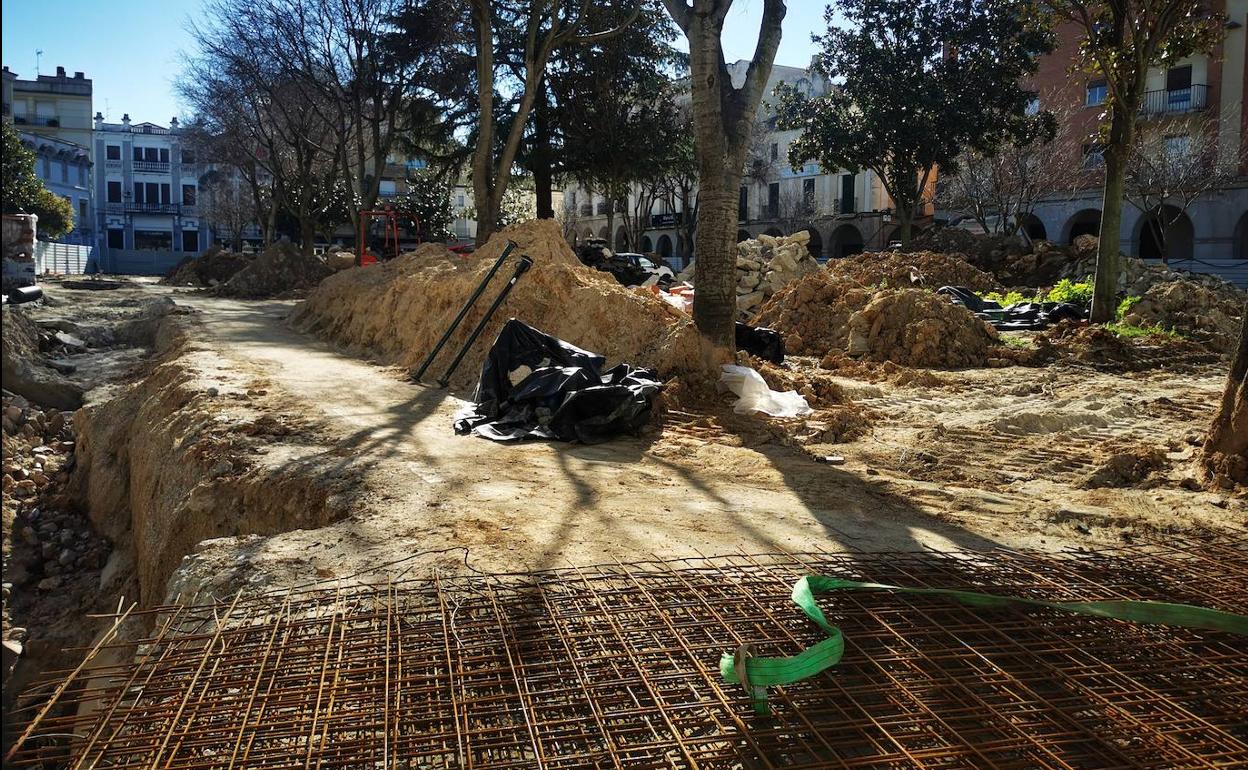 El ritmo de obras en la plaza de España no es el esperado, tampoco el deseado por parte de la empresa adjudicataria ni del Ayuntamiento de Don Benito. Así lo asegura Enrique Talavera, concejal de Desarrollo Urbano, que reconoce que a diversas incidencias y a las lluvias se suman también otros factores como la falta de mano de obra o la dificultad para encontrar maquinaria en un momento determinado. «Pero en cualquier caso la empresa no va a renunciar porque para eso estamos manteniendo reuniones constantemente las dos partes involucradas», asevera.